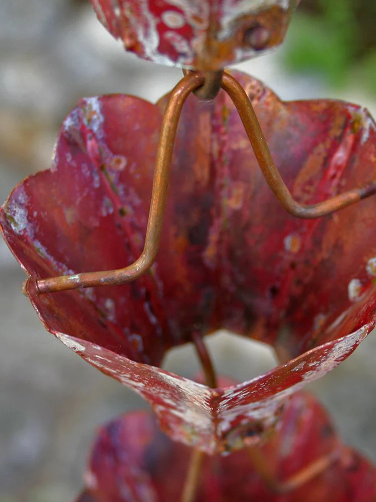 The Aged Star Flower Rain Chain is a made up of multi-sided cups that resemble flowers. Each cup is individually crafted by hand and each side is welded to the next. The welding torch causes this beautiful pre-aged patina finish. Each rain chain comes with a matching v-hook for easy installation. The v-hook sits inside the gutter opening to hold the rain chain in place.