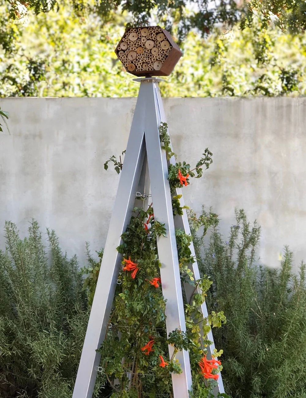 Expert bee lovers can even harvest unhatched bee larvae from the reeds and store until after frost. The Bee Bungalow together with the Akoris Garden Tuteur provide a garden support system for both flora and fauna. Bees will love this modern/rustic habitat!