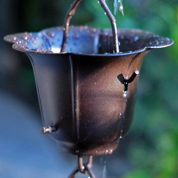 The Flower Cups Rain Chain is a classic! The flower design is beautifully understated and coordinates with a wide variety of home styles. The medium size cups are suitable for most homes and they can handle a variety of rainfall conditions.