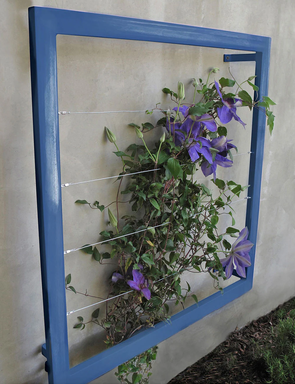 Inspired by Parisian vertical gardens, tapestries, and classic French espalier. Welded brackets stand out 4" from wall allowing vine to weave through horizontal stainless-steel cable, creating an organic tapestry. Beautiful in multiples, lightweight, and easy to install.