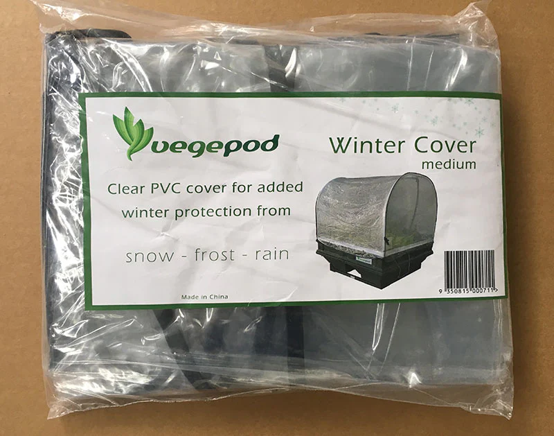 The Winter Cover (aka Hothouse Cover, Greenhouse Cover, or Propagation Cover) is made from clear non-permeable PVC. These covers are custom cut and hem-sewn to sheath easily and snugly over all three Vegepod canopies.